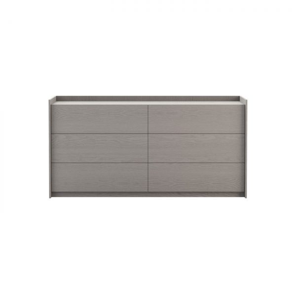 This is a wooden chest of drawers with 6 compartments. Like the other pieces of this family, the frame extends up and down the drawers, creating a more reserved and exclusive effect.