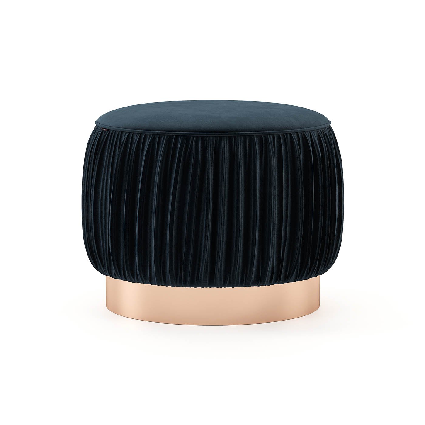 René is a stunning upholstered pouf with stainless steel footer. This piece fits perfectly on a warm and cozy decor thanks to its frilled details on the bottom and the selection of materials chosen.