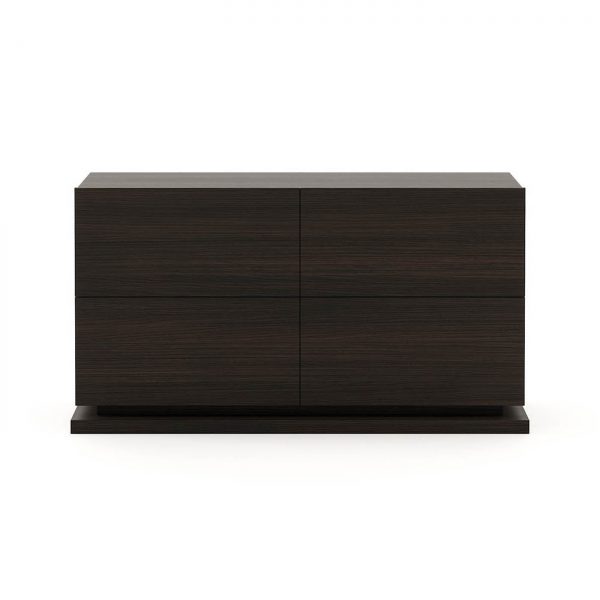 With 4 drawers, set on a slightly wider base, with a subtle partition between it and the drawer block. A simple, useful and elegant solution for your bedroom.
